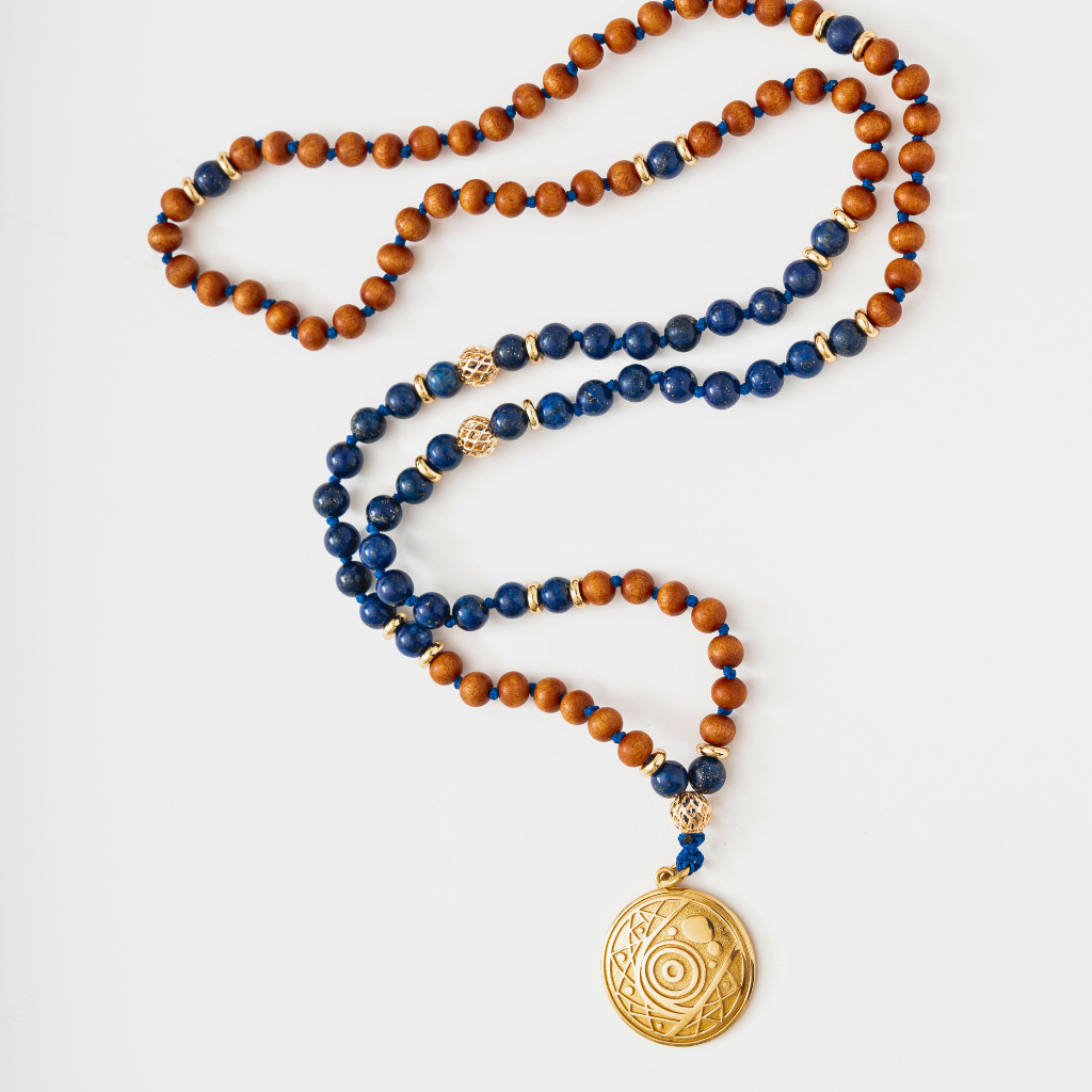 Becoming Ageless Pendant, Lapis Lazuli, Sandalwood, and 18K Gold Beads