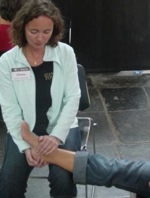 Volunteering with a stroke recovery group, I offered to take on one person to demonstrate the potential of Quantum-Touch to further advance recovery potential after stroke. My first volunteer was a woman in her 50’ s who had survived 3 strokes some 23 years ago. These strokes were all bleeders on the left side, so she had been affected on her right side. She had major surgery to stop the bleeding, and her skull had been opened using a flap.